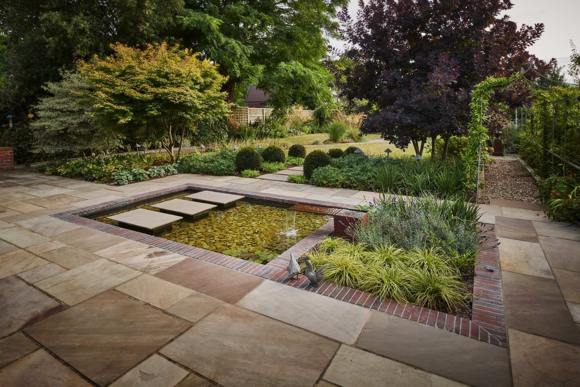 Adding a water feature or a pond to your garden can transform it into a peaceful oasis. The sight and sound of water can have a calming effect, enhancing the overall ambience of your garden. Whether you dream of a tranquil pond filled with aquatic plants and fish, a modern, sculptural water feature, or a bubbling fountain, our team has the expertise to design and install a water element that complements your garden beautifully.