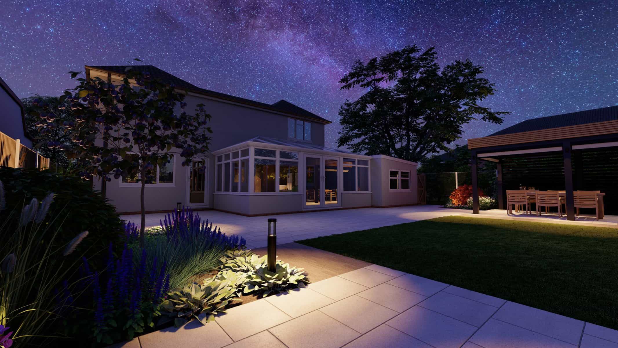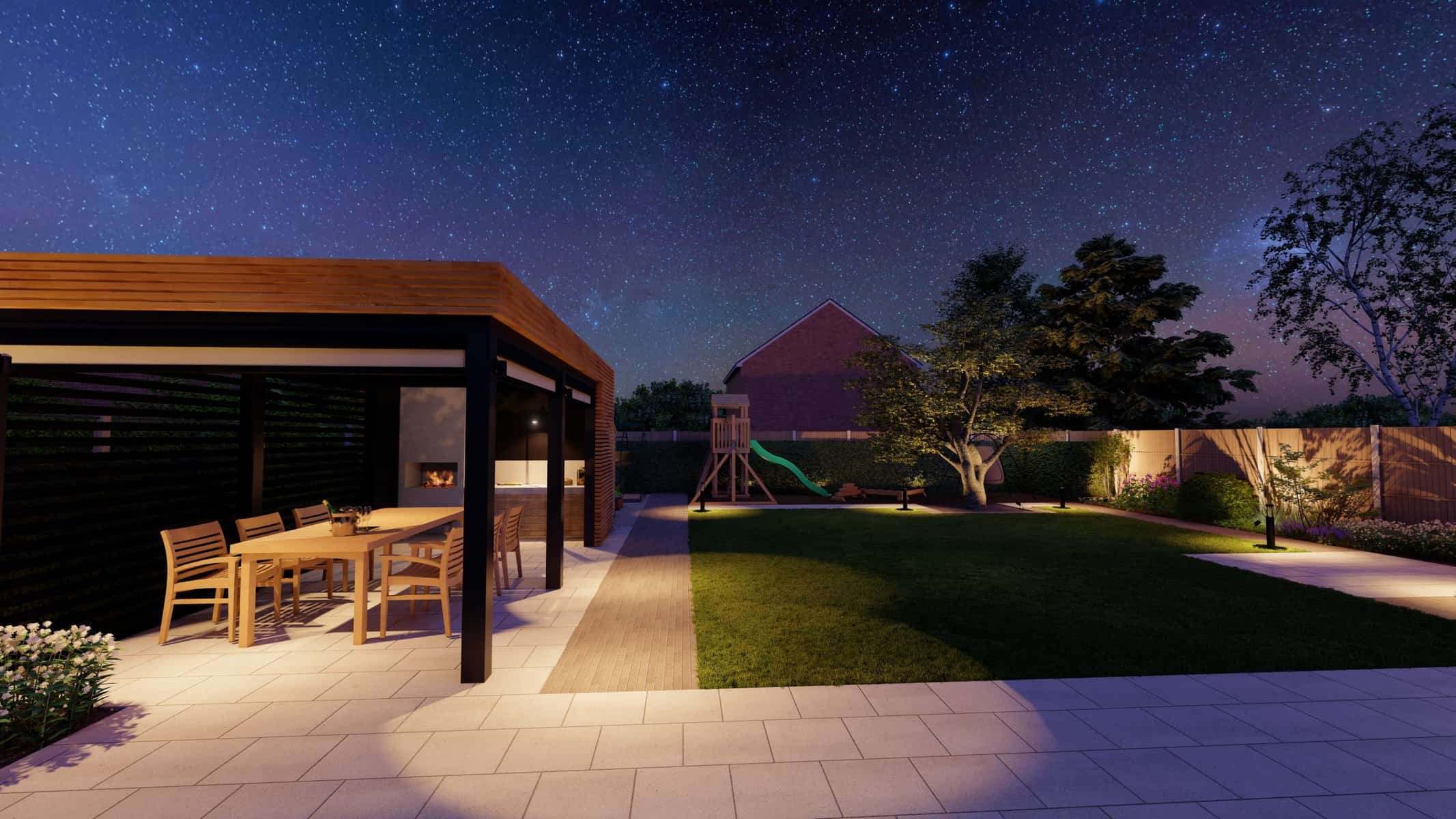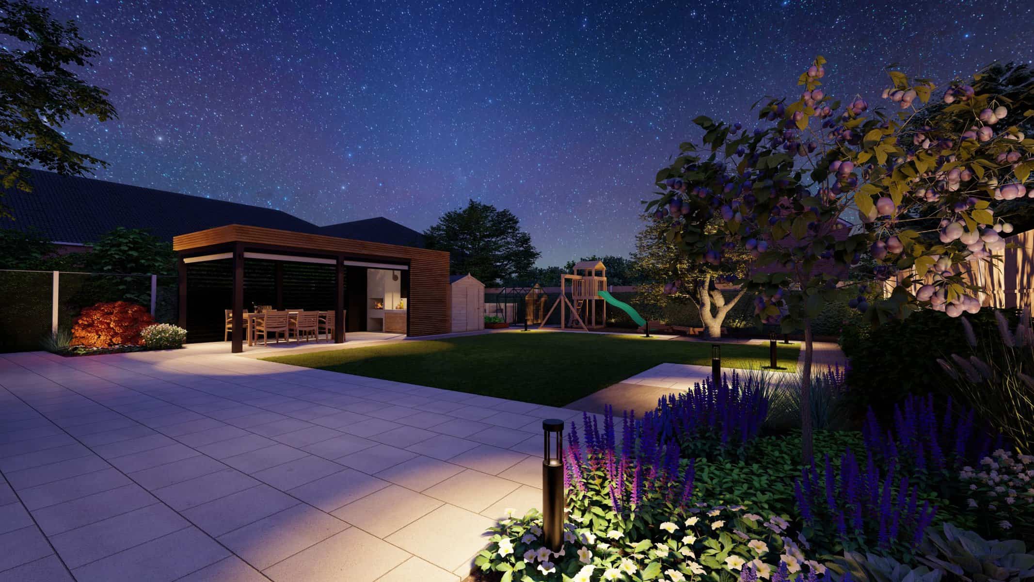 When the evening sets in, the garden is transformed under the warm glow of strategically placed lighting. The 3D renders capture the magic of these moments, presenting a garden that’s as enchanting at night as it is during the day.