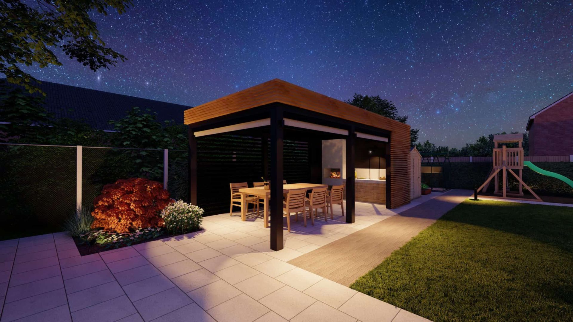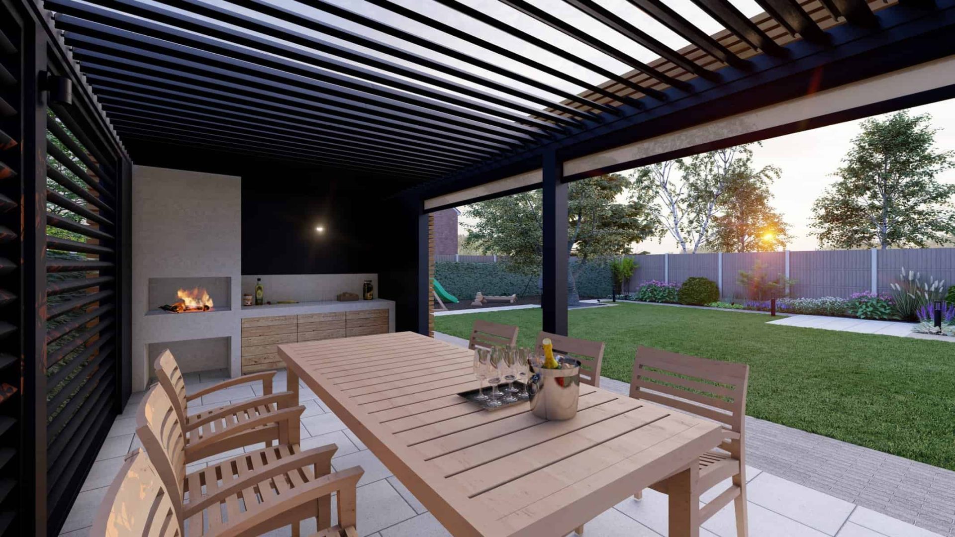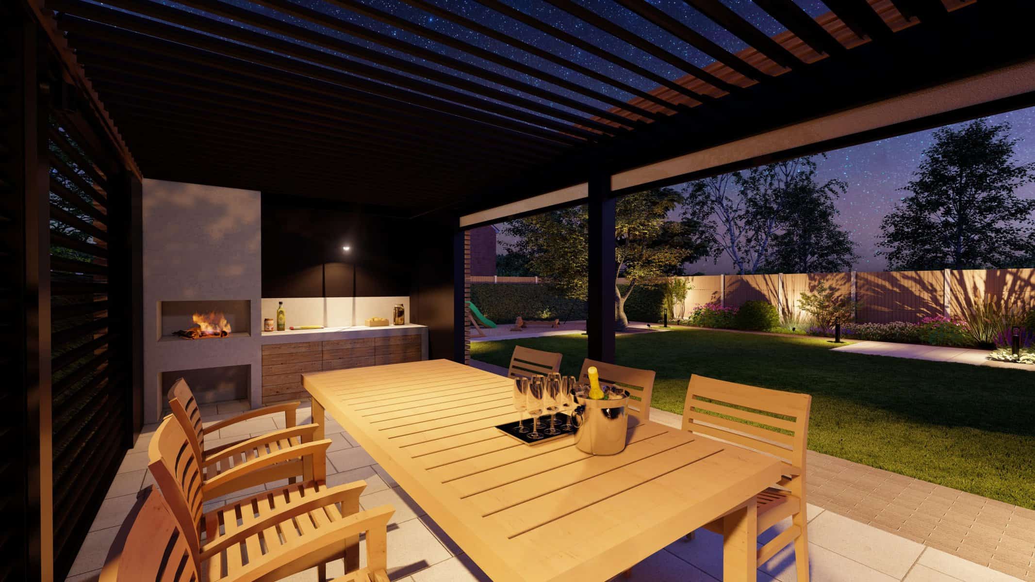 Your journey begins with a traditional Argentine-style pergola quincho, the heart of our garden design. The 3D renders bring to life this inviting structure, equipped with a barbecue and a comfortable seating area. Envision lively outdoor gatherings, the scent of delicious grilling, and the warmth of shared meals under the protection of the elegant quincho.