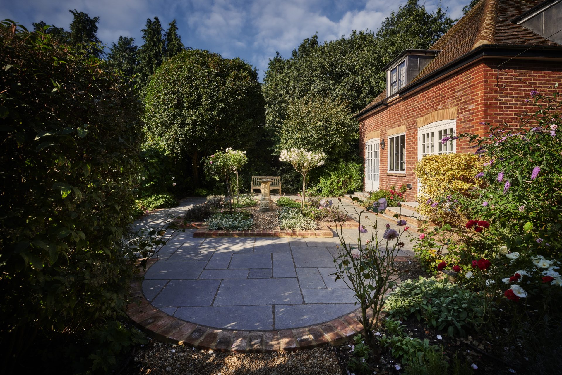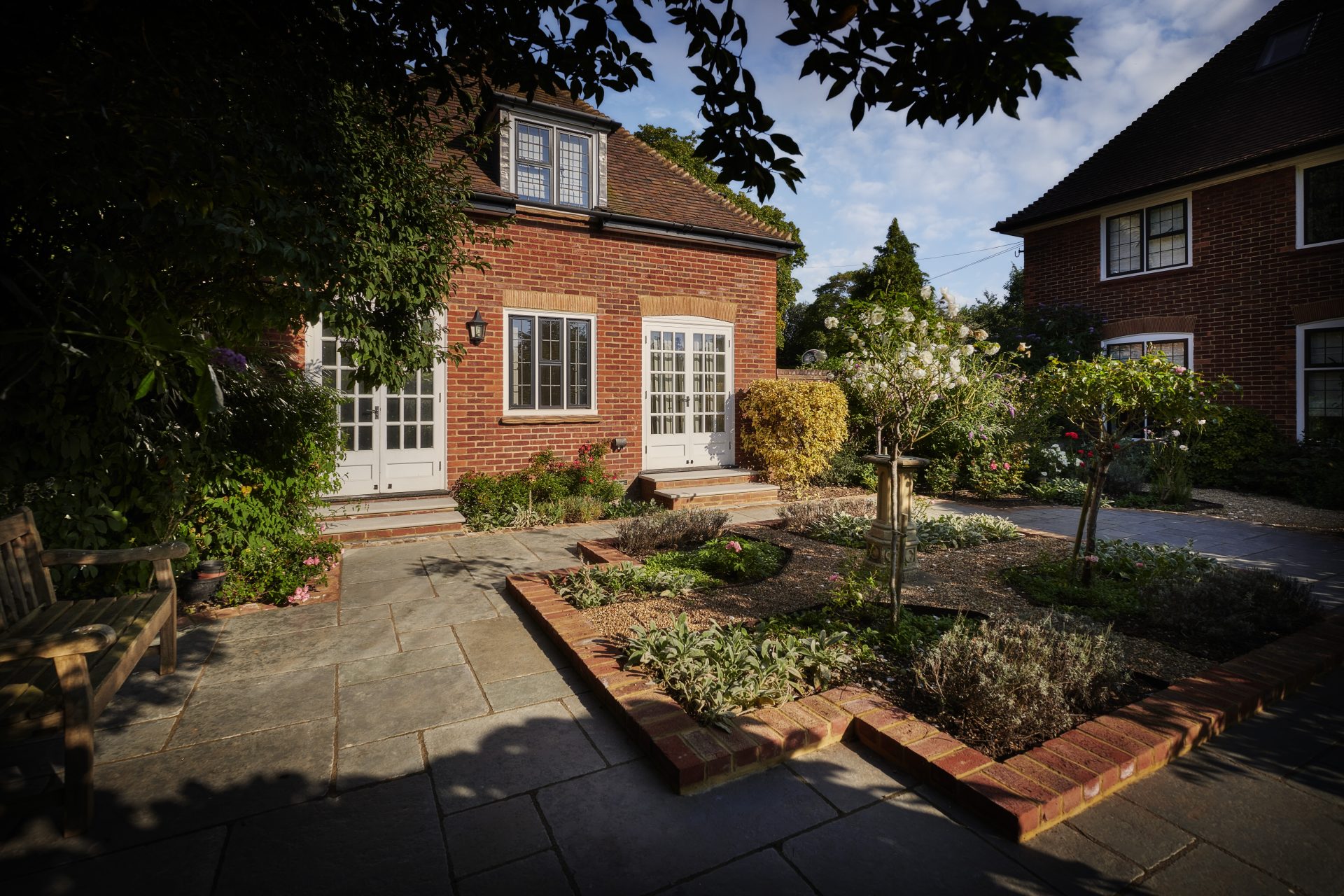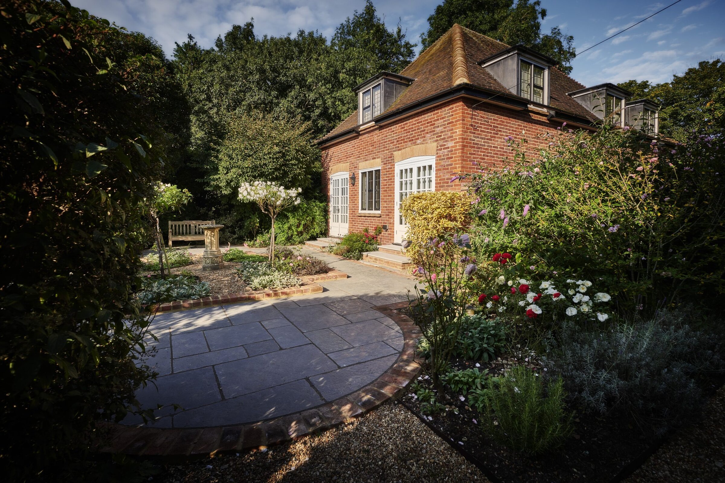 At the core of Floral Alleys lies a beautifully considered material palette, led by cool grey limestone flags, chosen for their understated elegance and enduring charm. These soft, tonal surfaces provide a serene foundation, while the warm red brick walling and edging add depth and contrast. Together, they create a visual dialogue that feels both balanced and captivating, allowing each material to enhance the other without competing for attention.