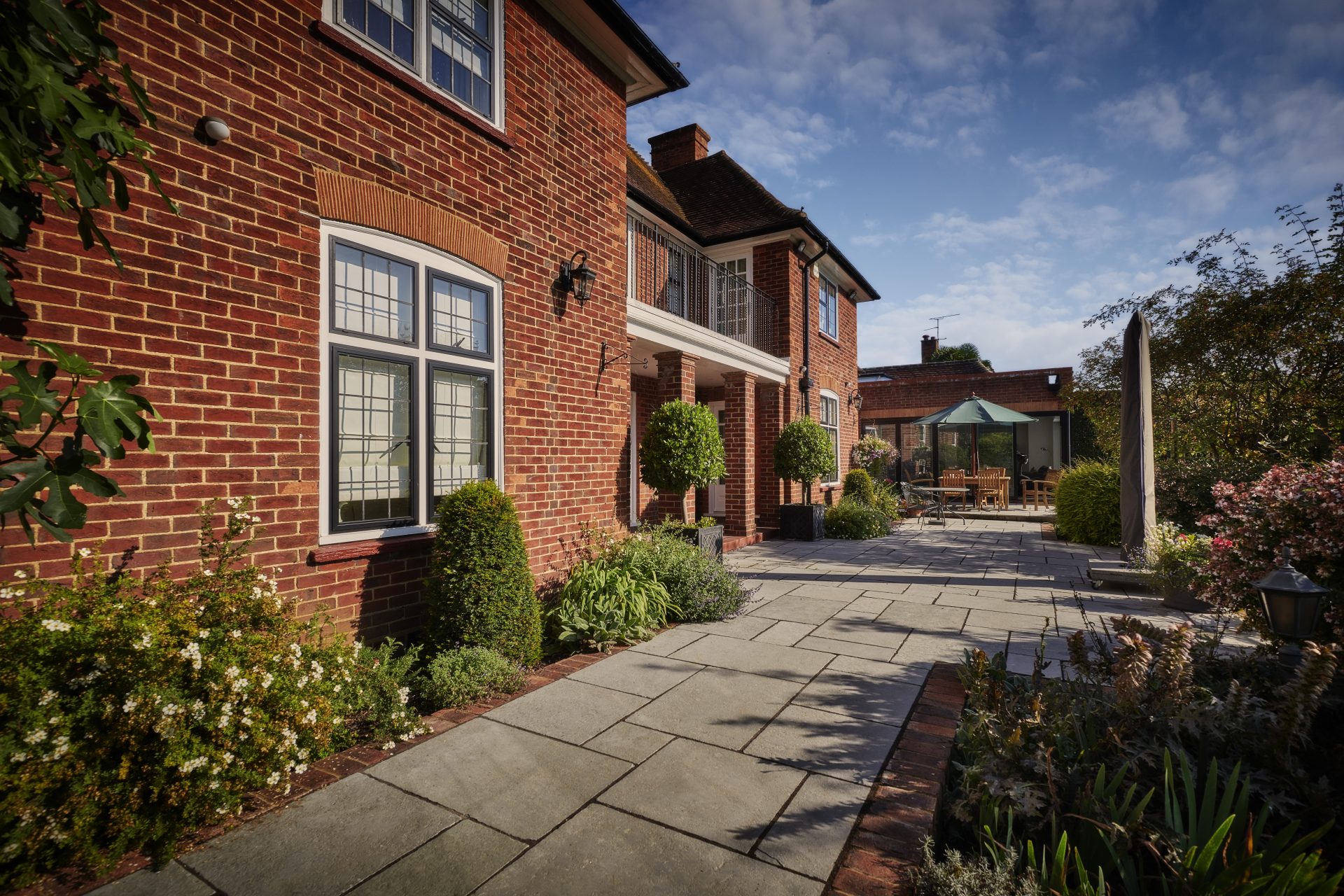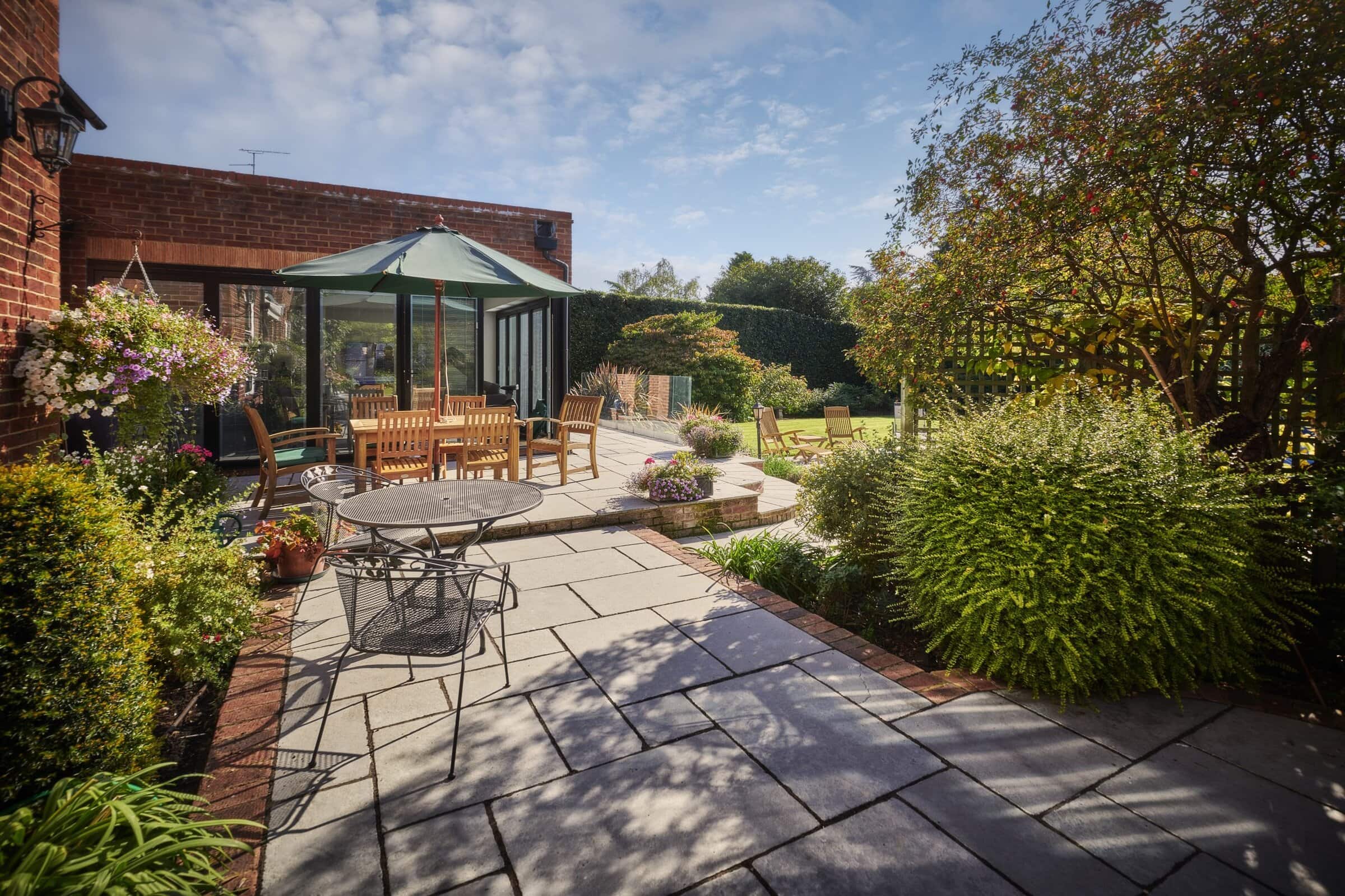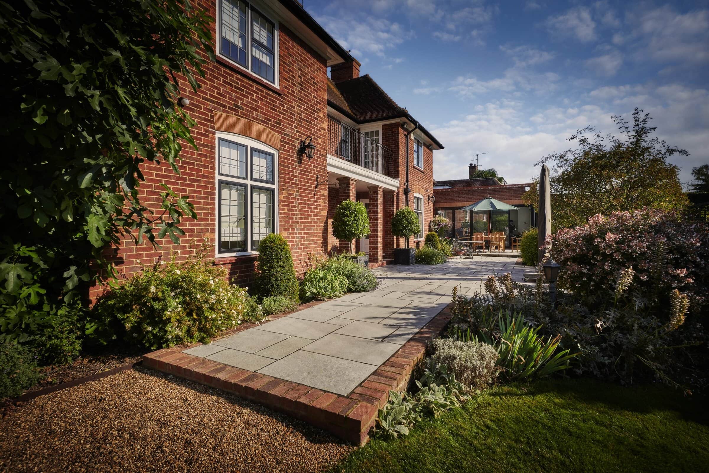 At the core of Floral Alleys lies a beautifully considered material palette, led by cool grey limestone flags, chosen for their understated elegance and enduring charm. These soft, tonal surfaces provide a serene foundation, while the warm red brick walling and edging add depth and contrast. Together, they create a visual dialogue that feels both balanced and captivating, allowing each material to enhance the other without competing for attention.