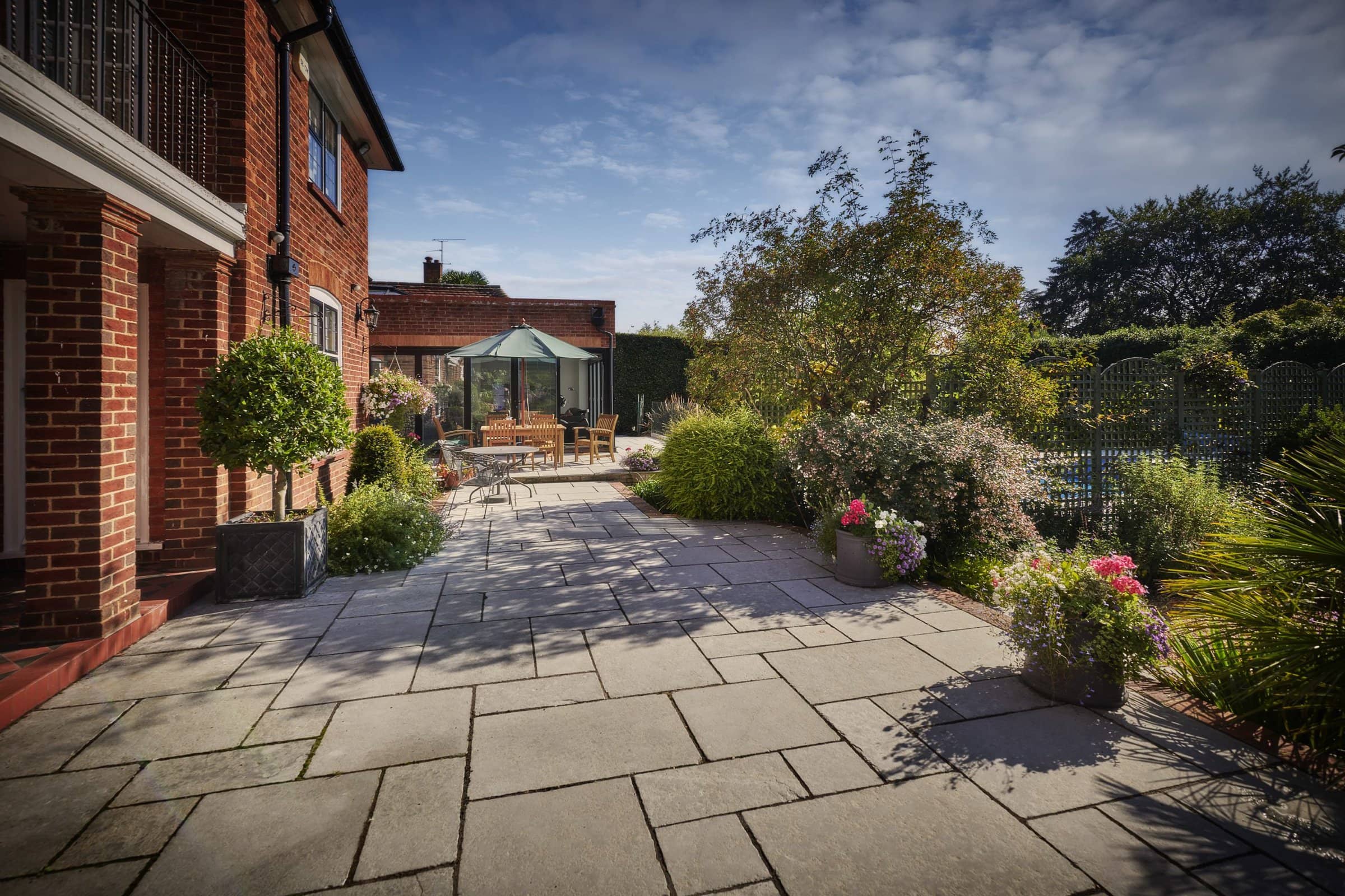 At the core of Floral Alleys lies a beautifully considered material palette, led by cool grey limestone flags, chosen for their understated elegance and enduring charm. These soft, tonal surfaces provide a serene foundation, while the warm red brick walling and edging add depth and contrast. Together, they create a visual dialogue that feels both balanced and captivating, allowing each material to enhance the other without competing for attention.