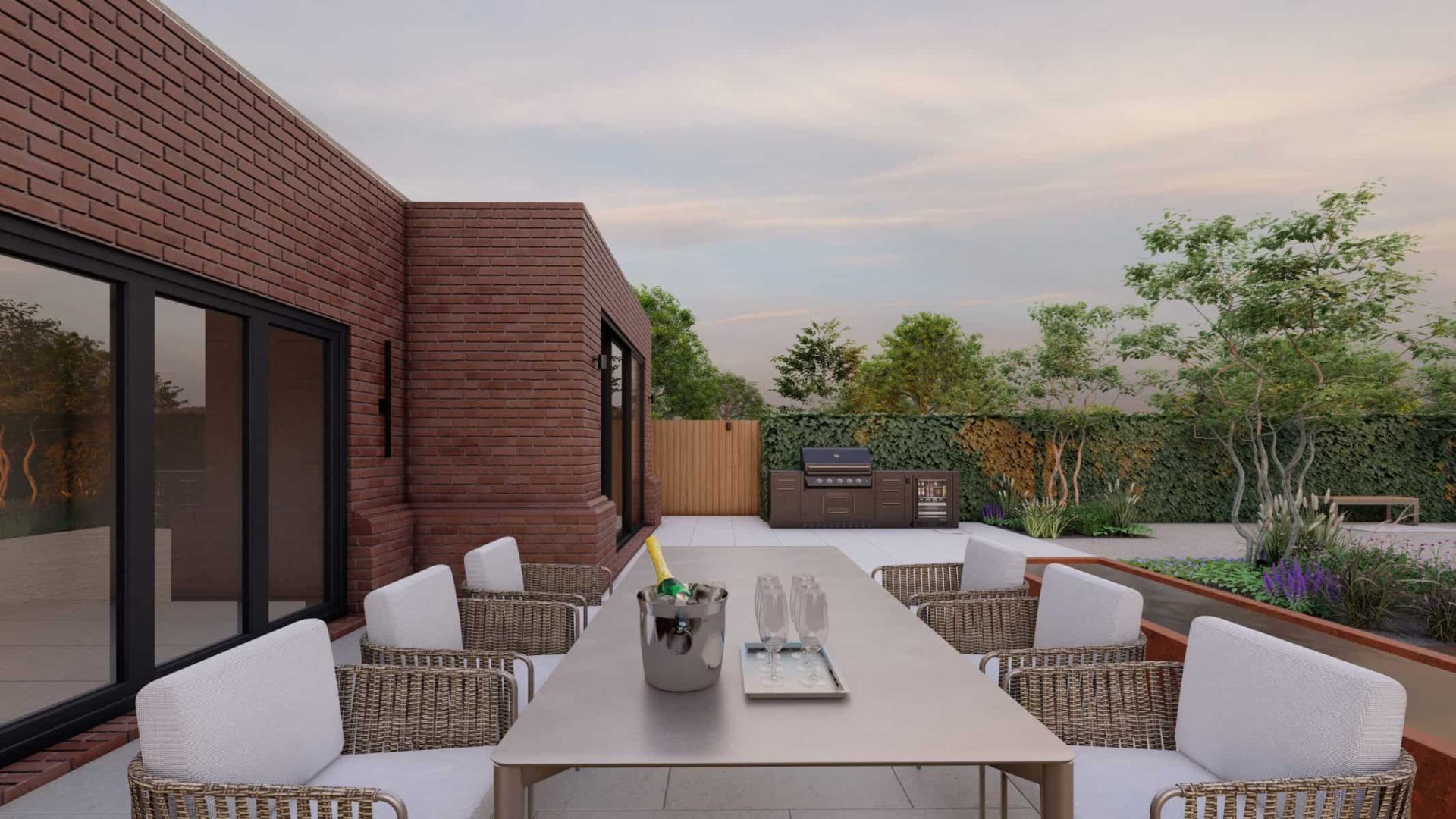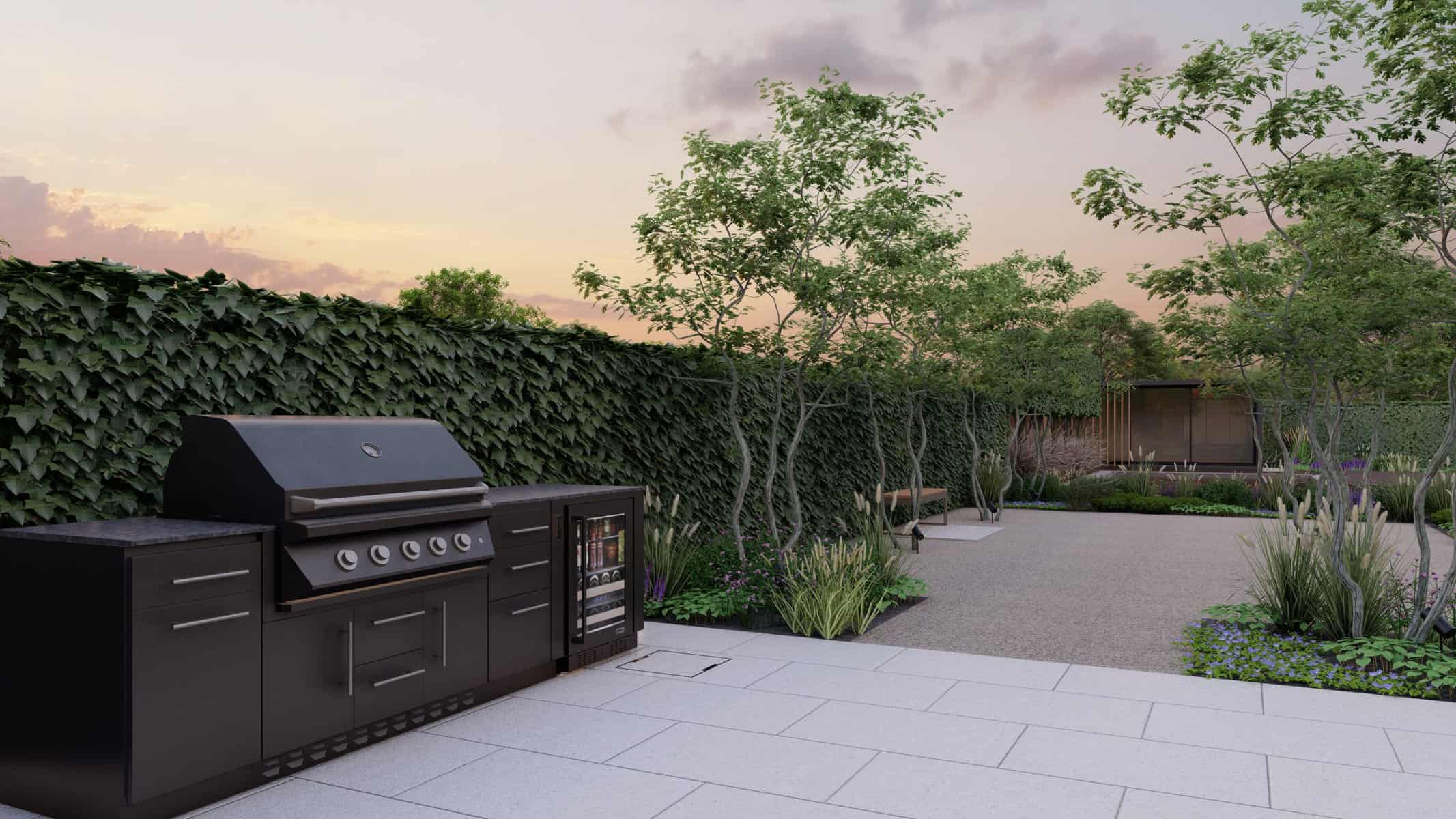 For the lovers of outdoor cooking, our design features a fully-equipped outdoor kitchen complete with a top-tier grill and fridge. These 3D renders demonstrate how seamlessly a functional cooking space can blend into the outdoors, adding convenience without compromising aesthetics.