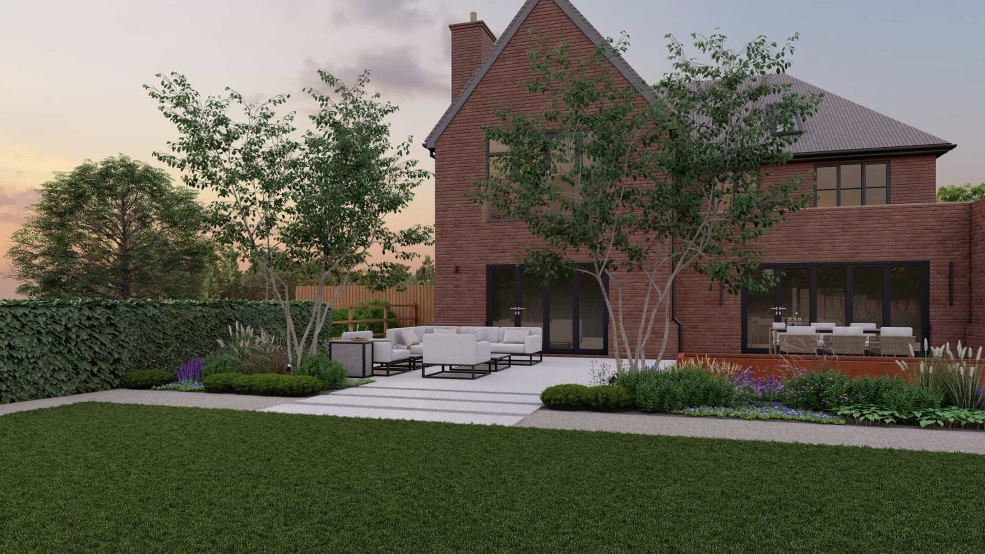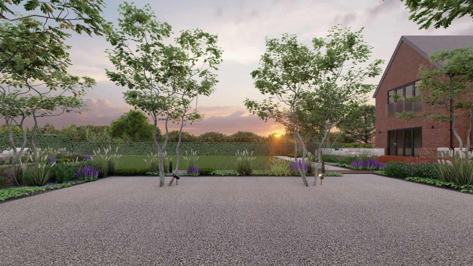 Adding the finishing touch to our design are the meticulously manicured hedges and formal plantings. Acting as natural screens, these elements provide both privacy and a splash of color, contributing to the overall tranquillity of the space.
