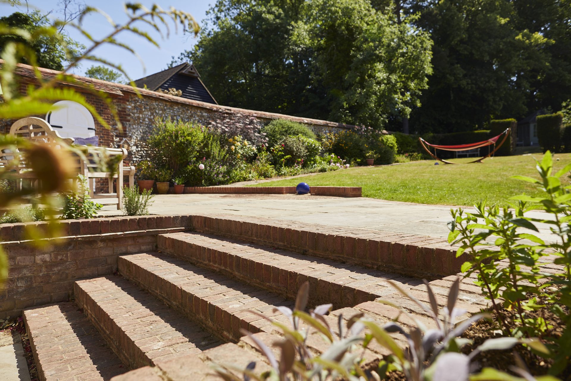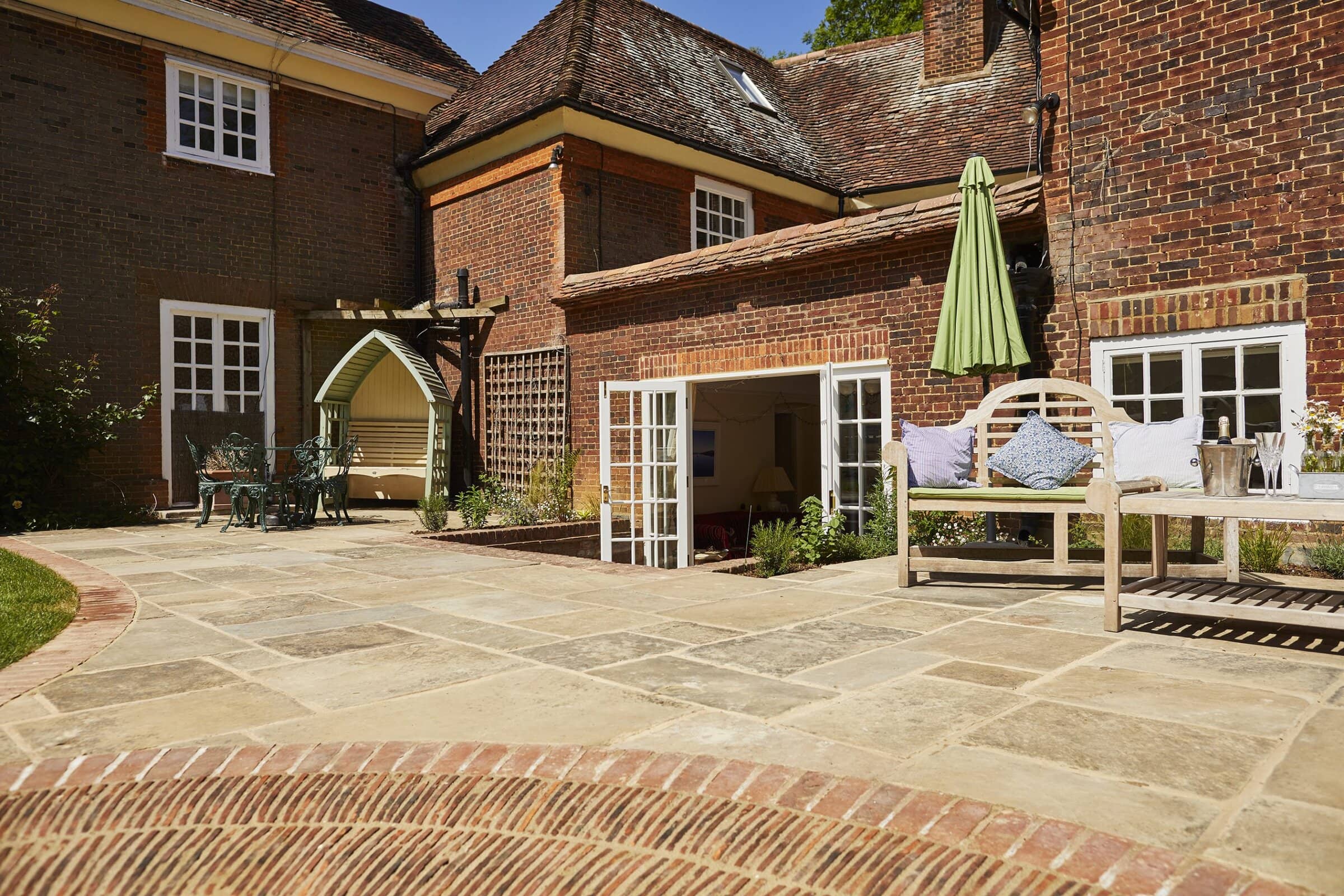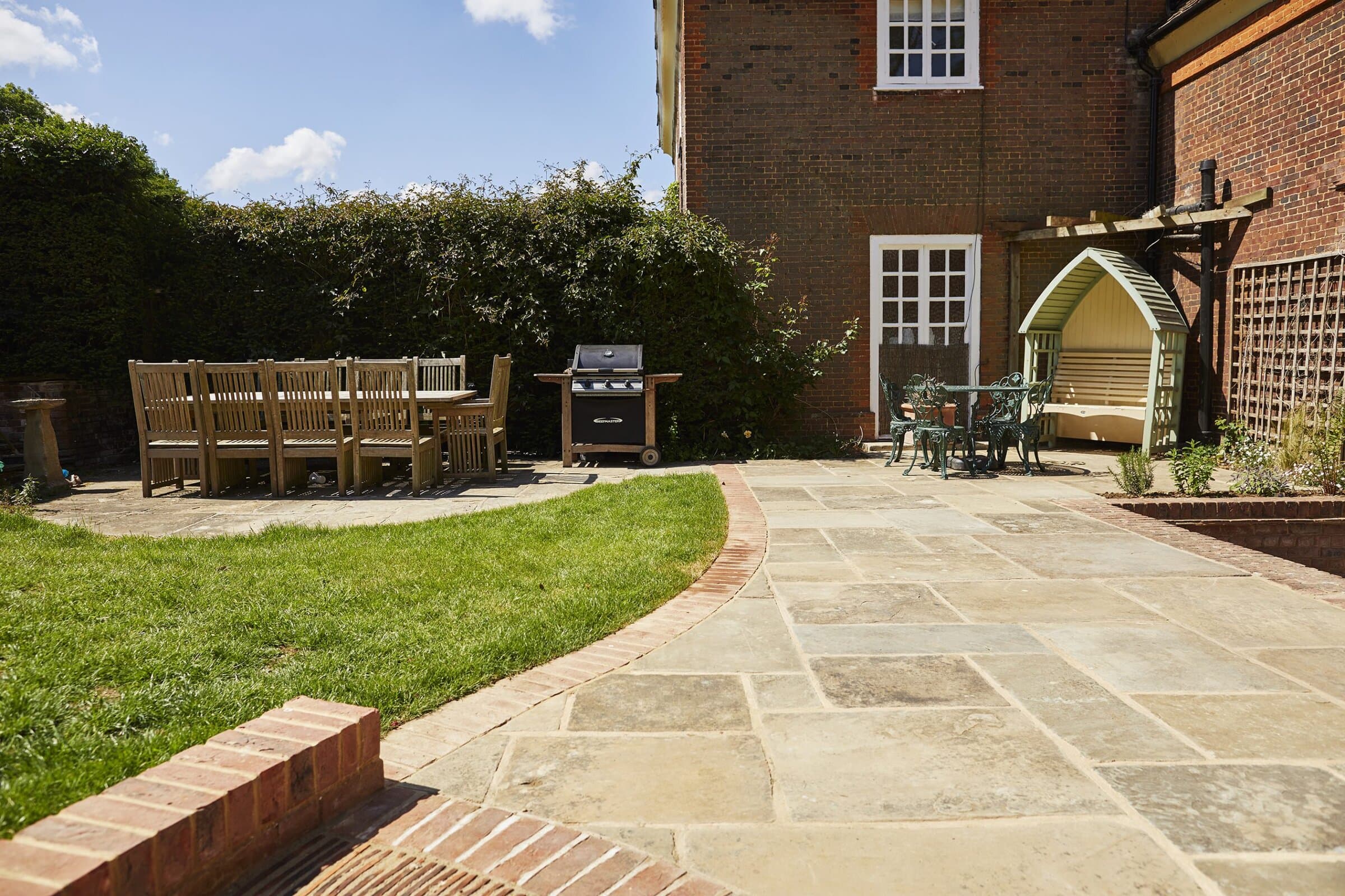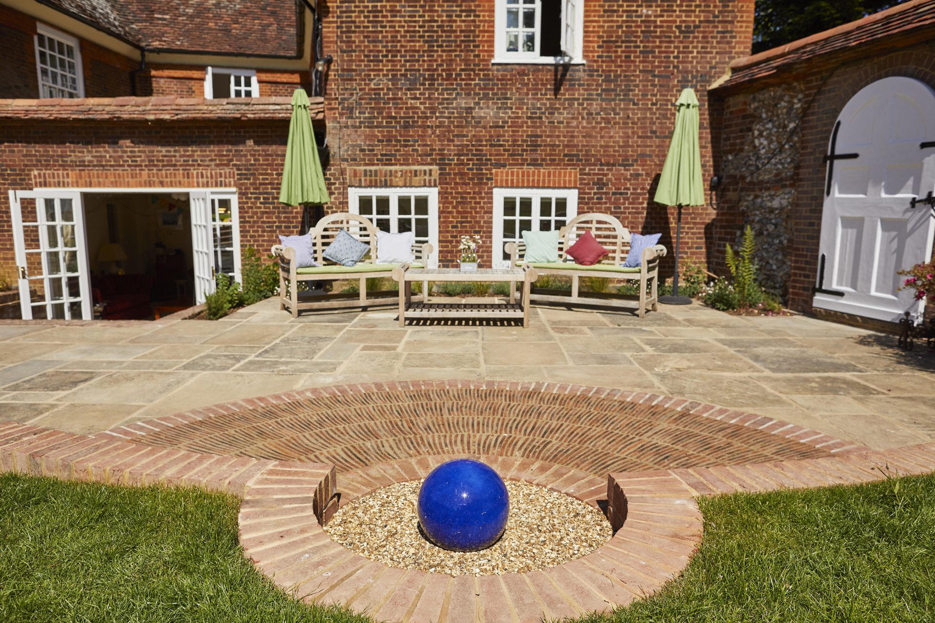 At its heart lies a striking centrepiece, set against a backdrop of reclaimed Yorkstone paving. With its rich, earthy tones and natural character, the Yorkstone grounds the design in heritage while enhancing the beauty of the surrounding elements. It’s a celebration of enduring materials and the quiet power they hold in shaping a truly exceptional space.