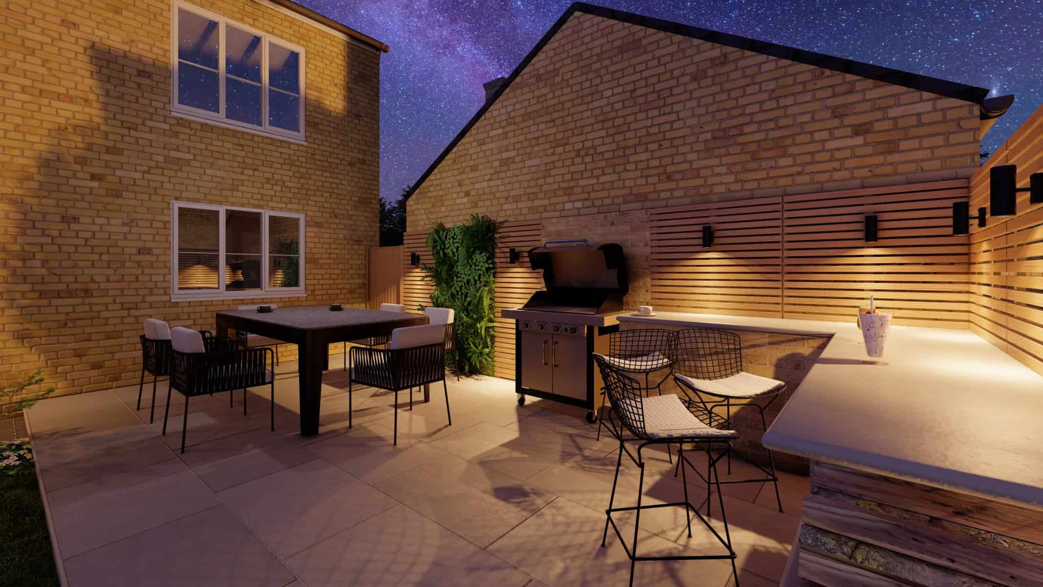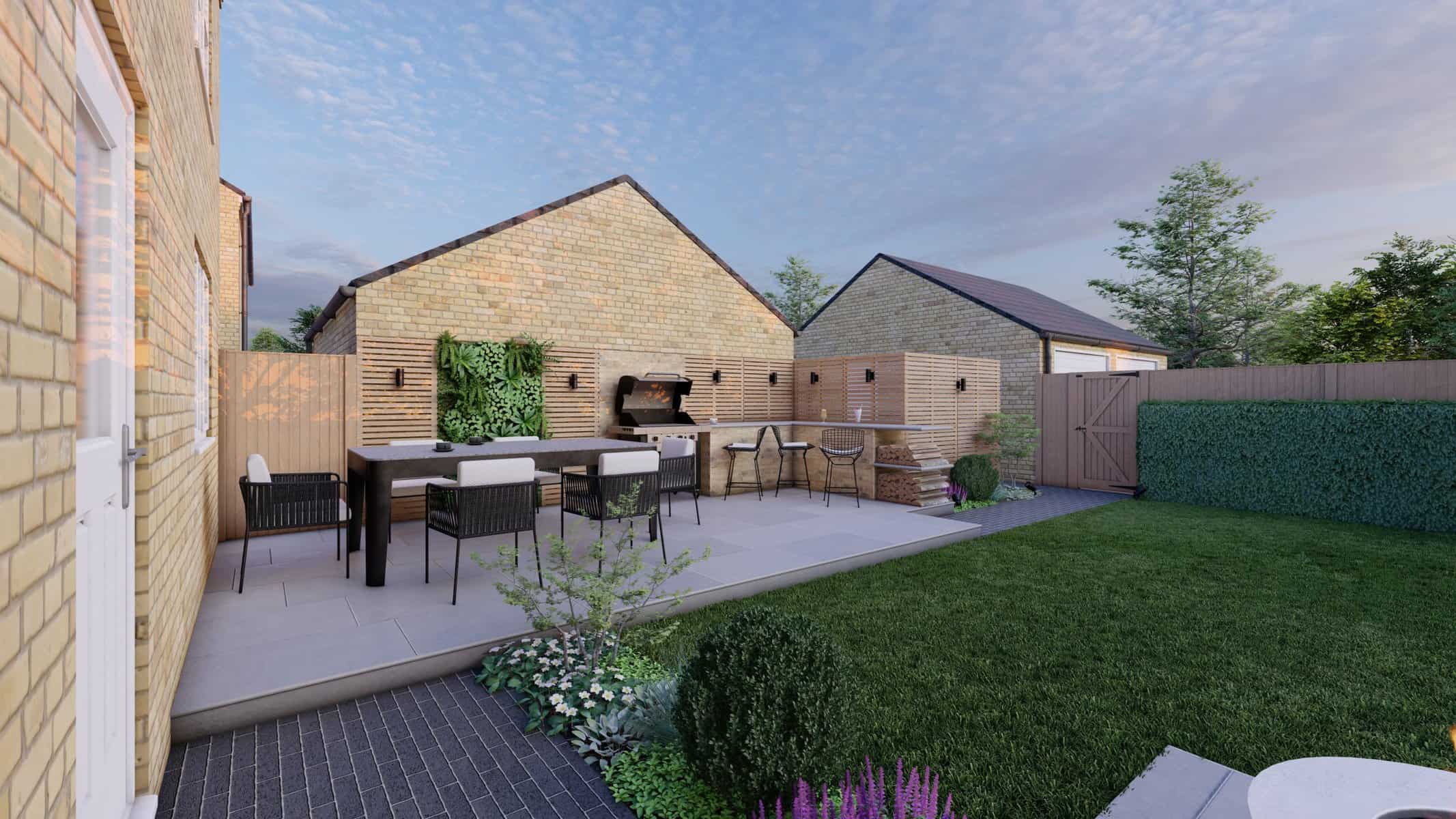 Every detail of our newbuild garden project is displayed through our meticulously designed 3D renders, highlighting the delicate balance we’ve achieved between functionality, comfort, and style. We believe that a garden should be a natural extension of your home, offering an outdoor space that caters to relaxation, entertainment, and practical needs.