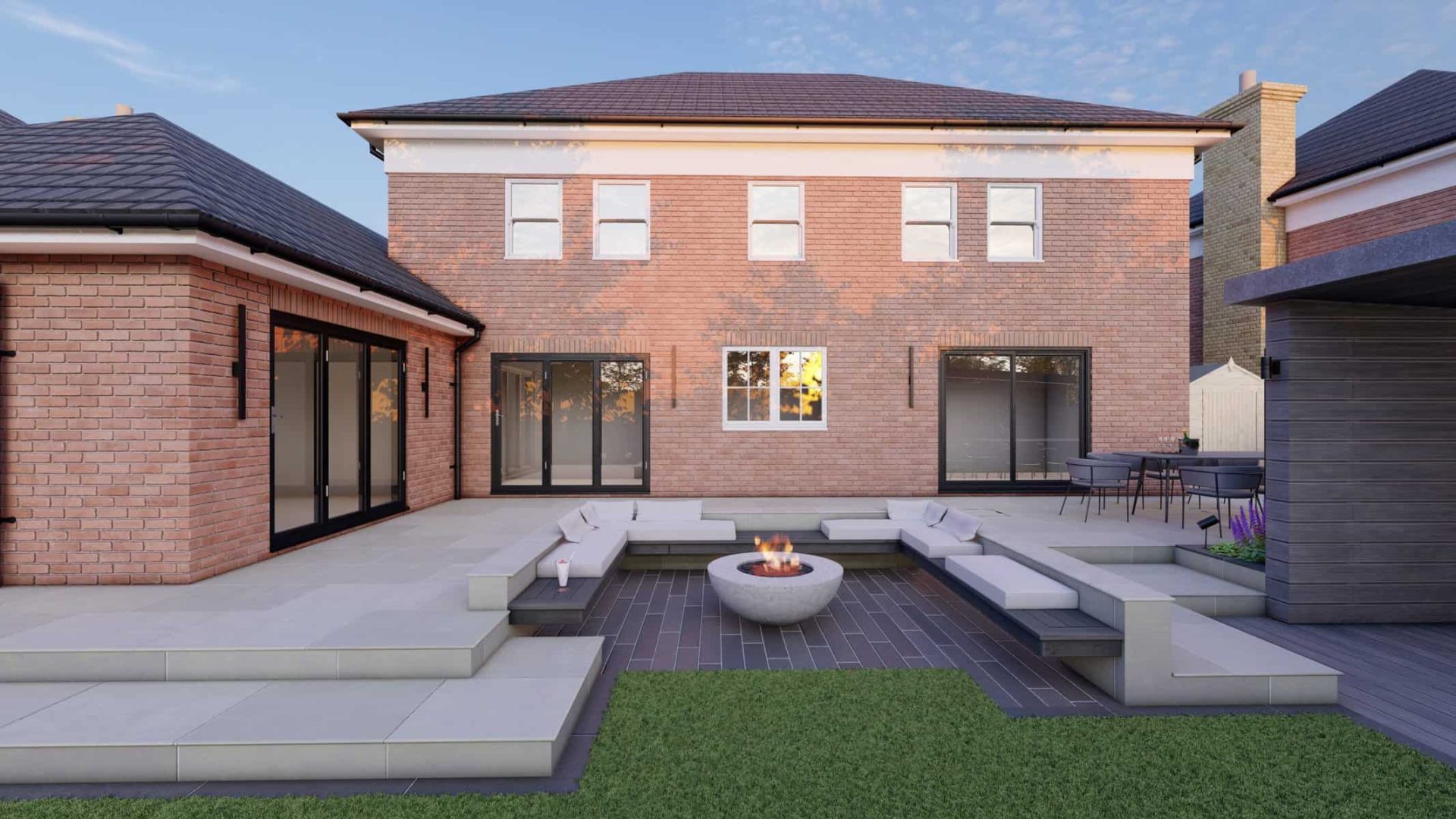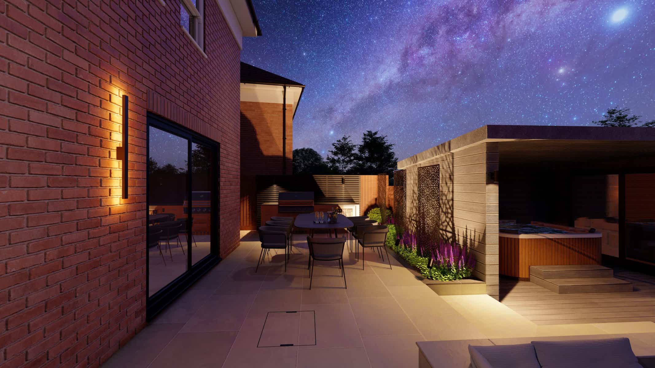 The design is completed by a formal seating area, beautifully laid on high-quality porcelain paving. This space invites you to sit back and appreciate the garden’s composition, or host memorable alfresco meals with family and friends.