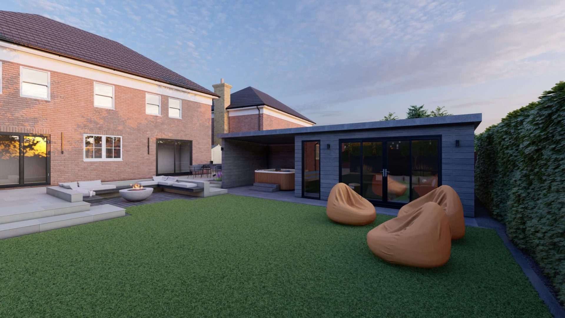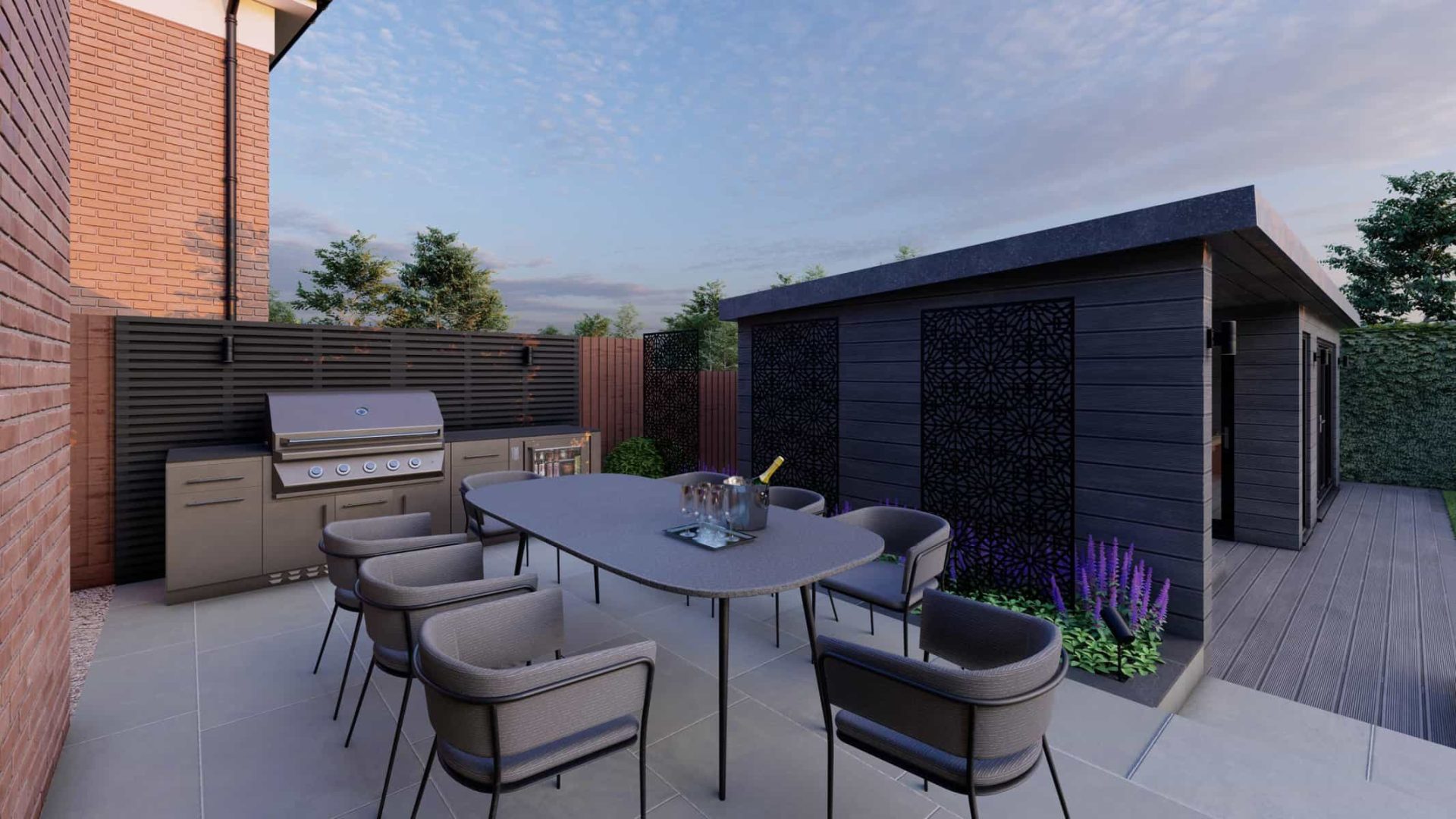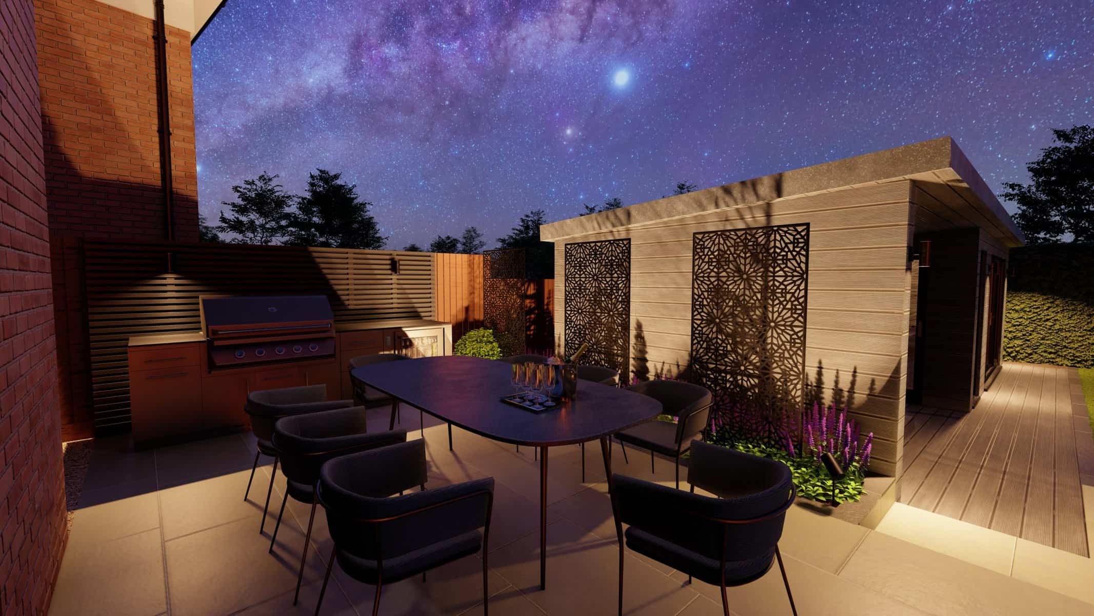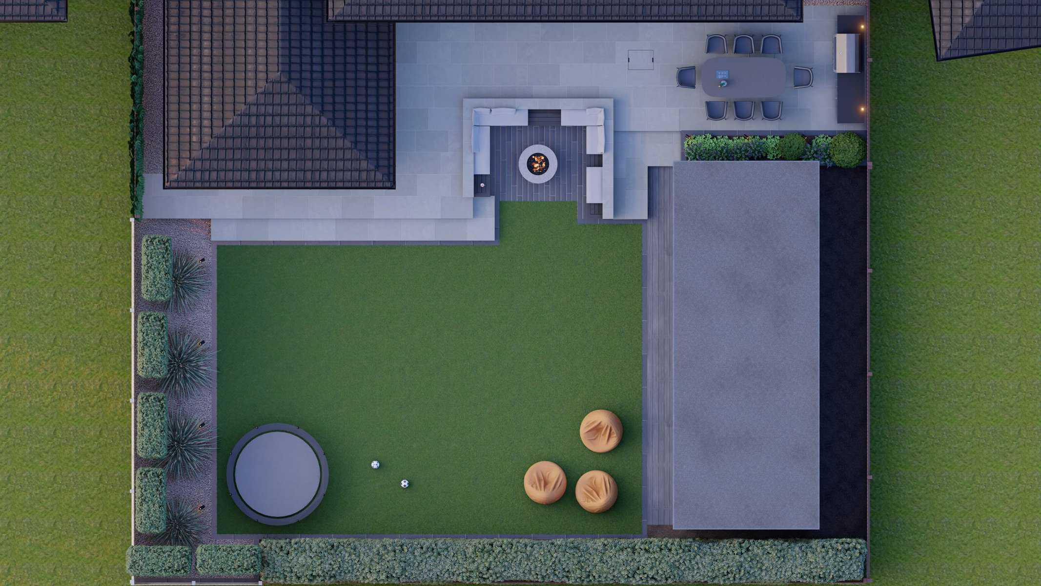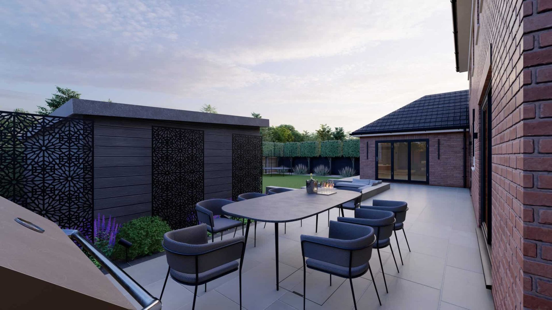 Our 3D renders illustrate the harmonious blend of various elements in this design, each meticulously crafted to offer comfort, functionality, and style. We believe that gardens should be versatile extensions of your indoor living spaces, and this project encapsulates that vision perfectly.
