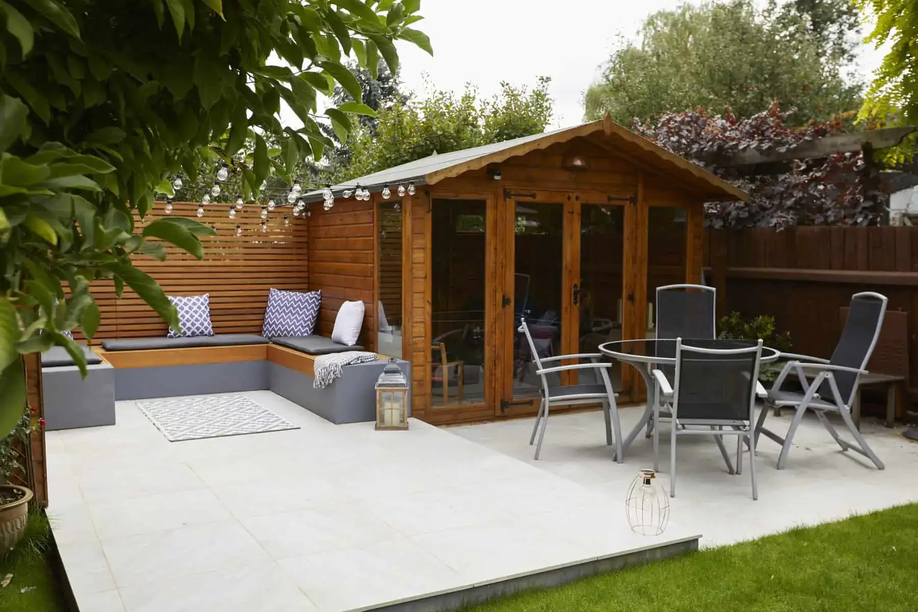 In keeping with the aim to create an inviting atmosphere, we introduced a sophisticated lighting plan and hardwood slats throughout the garden. The gentle, ambient light casts a warm glow on the garden as dusk falls, extending its usability into the evening and adding a touch of magic to the space. Meanwhile, the hardwood slats offer a sense of structure and continuity, their natural hues complementing the vibrant greenery.