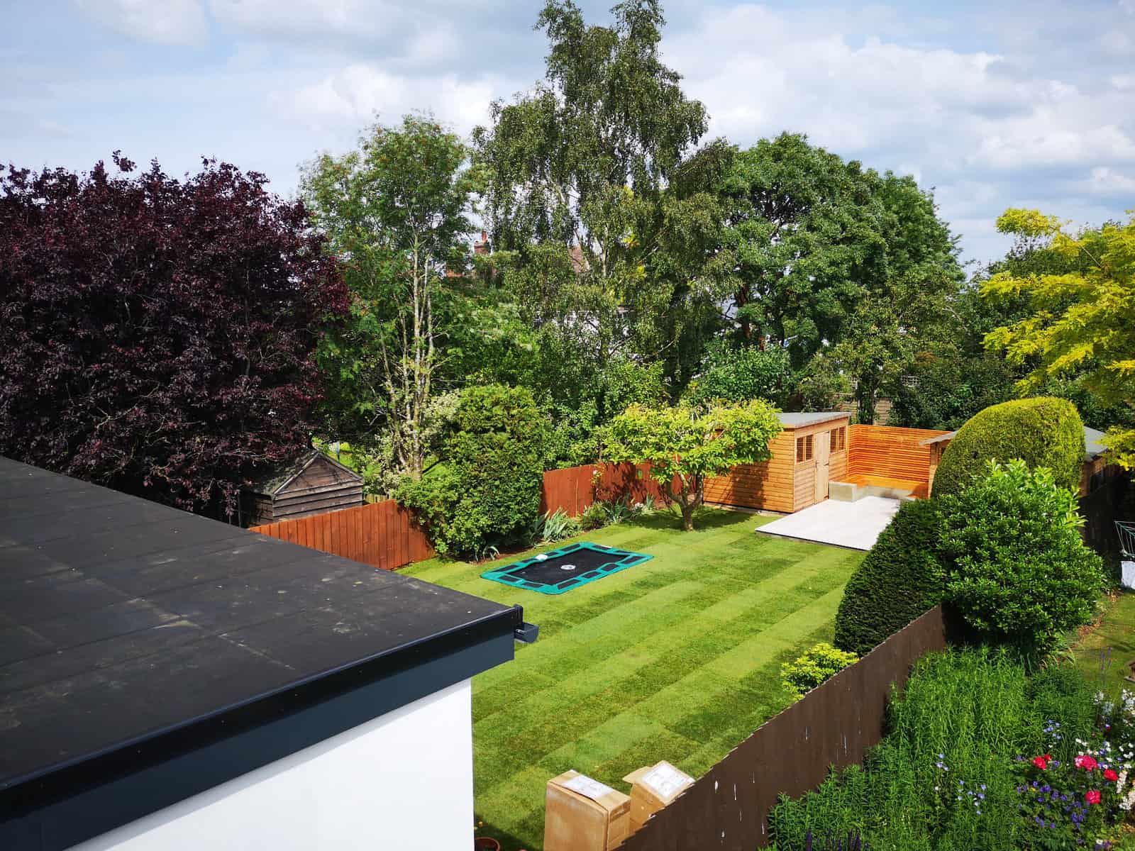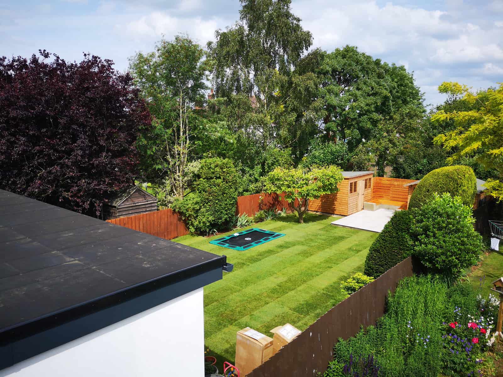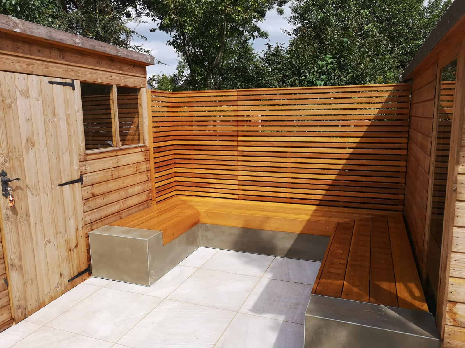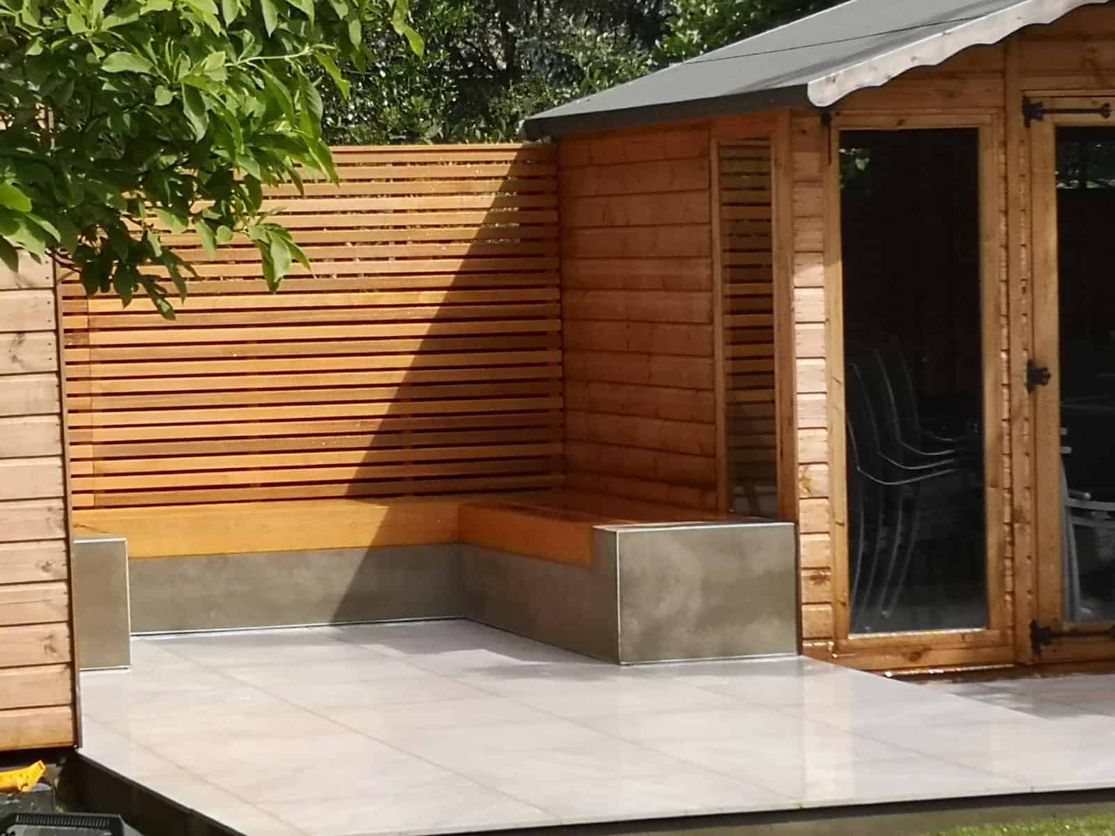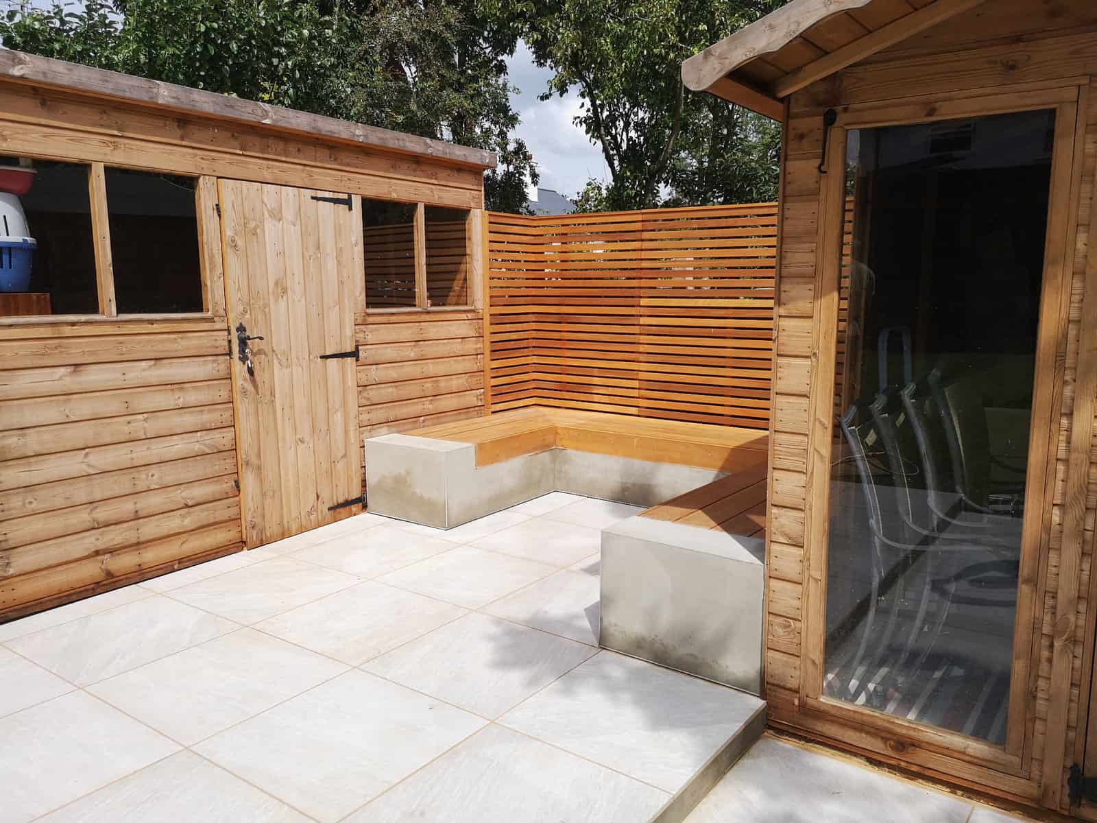 We strategically installed a bespoke seating area at the rear of the garden to bask in the warmth of the sun, transforming it into a prime spot for lounging, reading, or sharing conversations. This comfortable retreat serves as the perfect platform for adults to unwind and watch over the little ones at play.