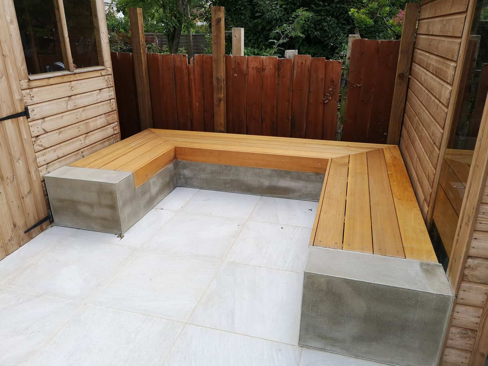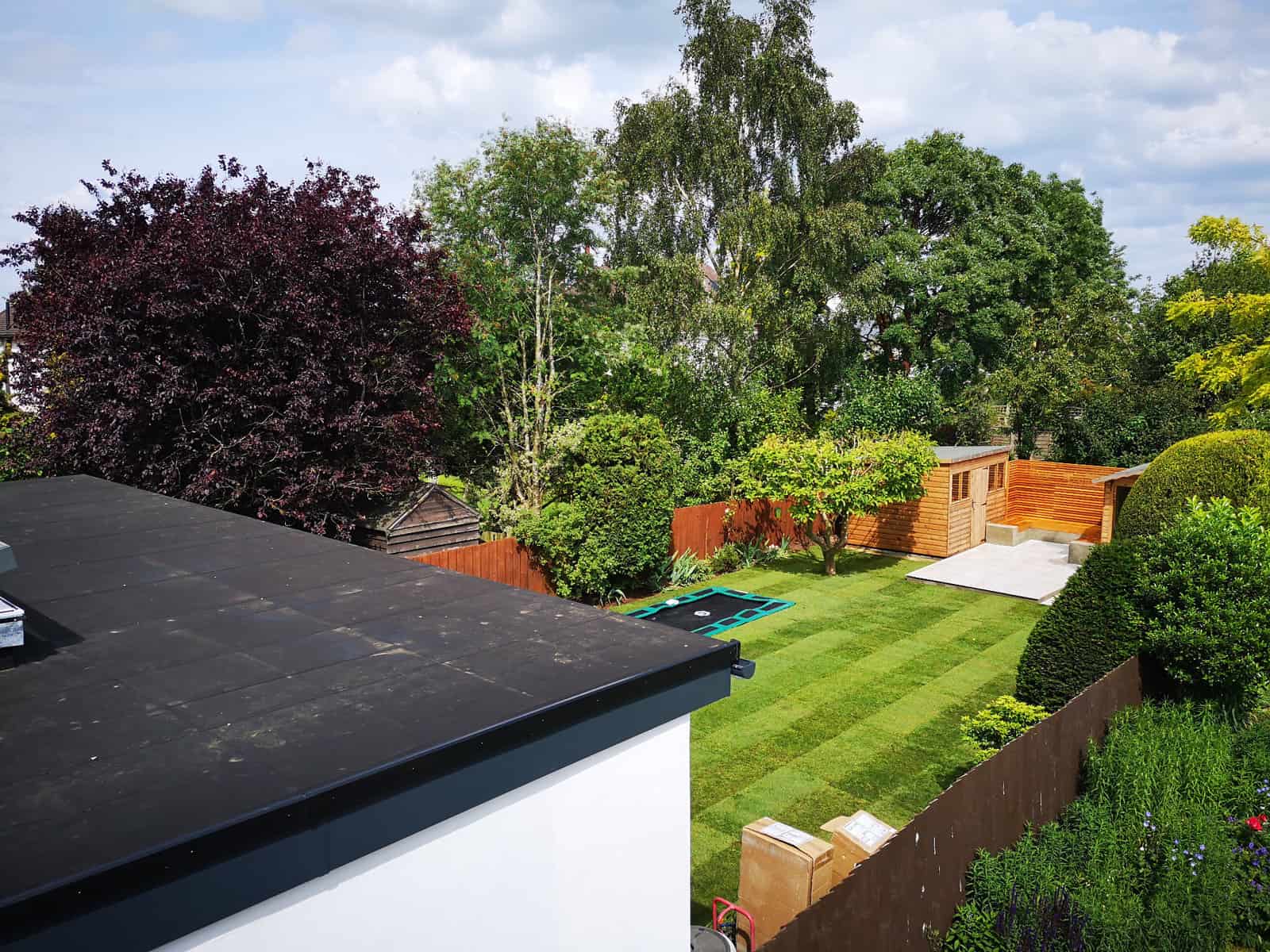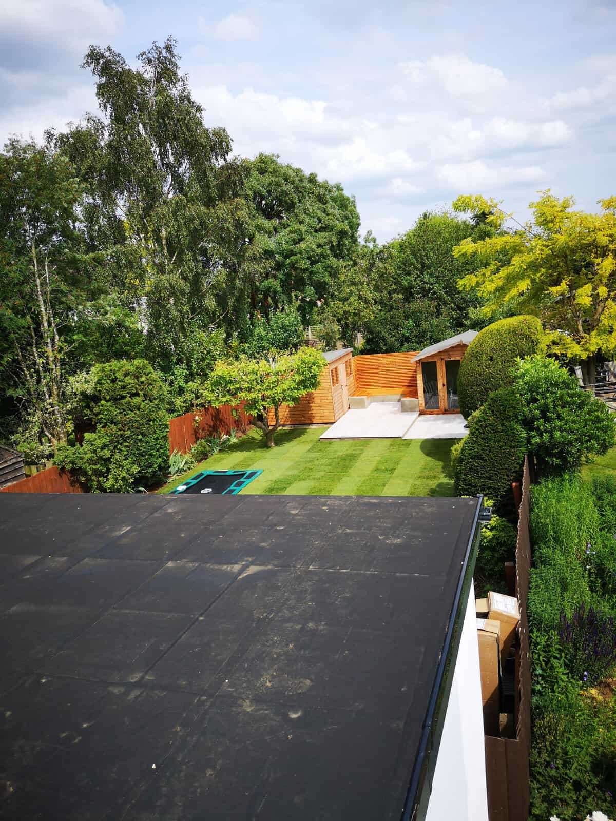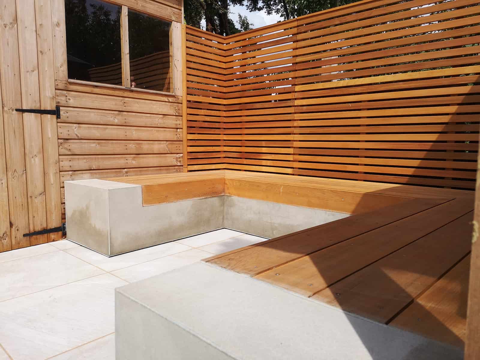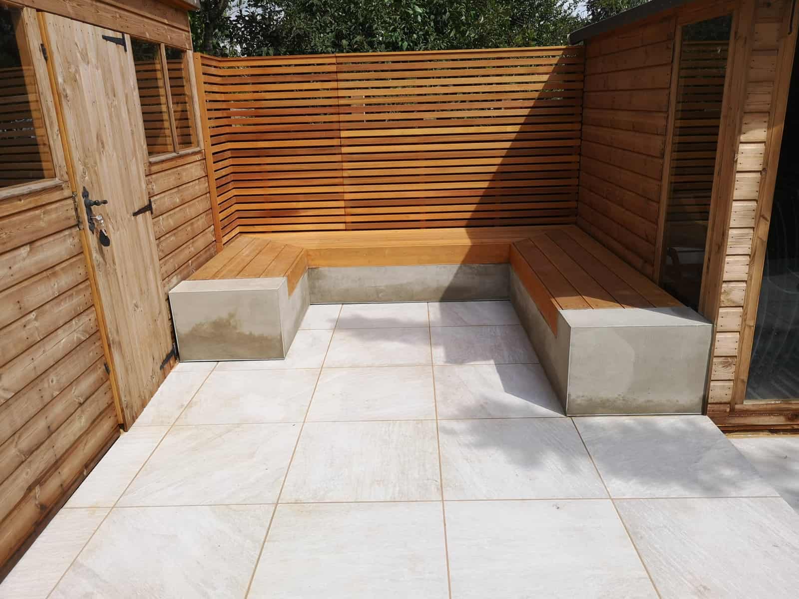 We strategically installed a bespoke seating area at the rear of the garden to bask in the warmth of the sun, transforming it into a prime spot for lounging, reading, or sharing conversations. This comfortable retreat serves as the perfect platform for adults to unwind and watch over the little ones at play.